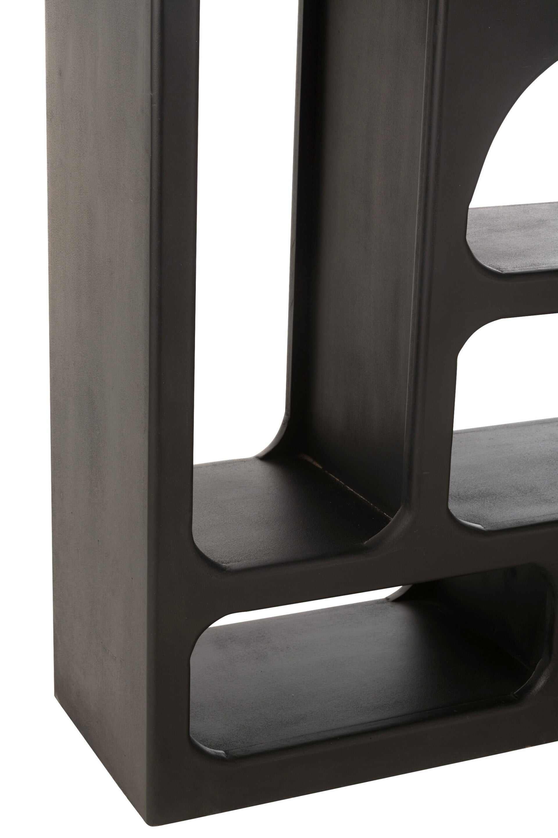 Étagère en bois de manguier noir, au design moderne et structuré. Elle offre plusieurs niches ouvertes idéales pour exposer objets décoratifs, bouteilles ou accessoires, tout en apportant une touche élégante et contemporaine à l’intérieur.